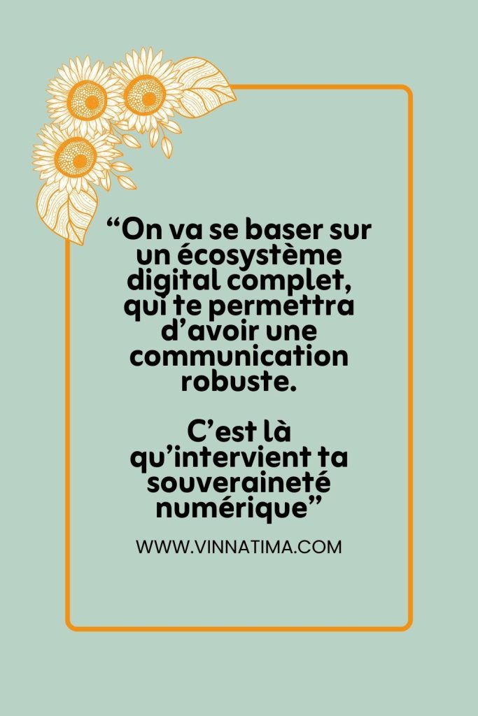 Pour bâtir une communication robuste, on va se baser sur un écosystème digital complet, qui te permettra de t’adapter en fonction des fluctuations. Ca ne veut pas dire que pour atteindre la souveraineté numérique, il faut multiplier les canaux et s’épuiser. Ca signifie simplement que tu ne peux pas laisser de potentielles collaborations « dans la nature ».